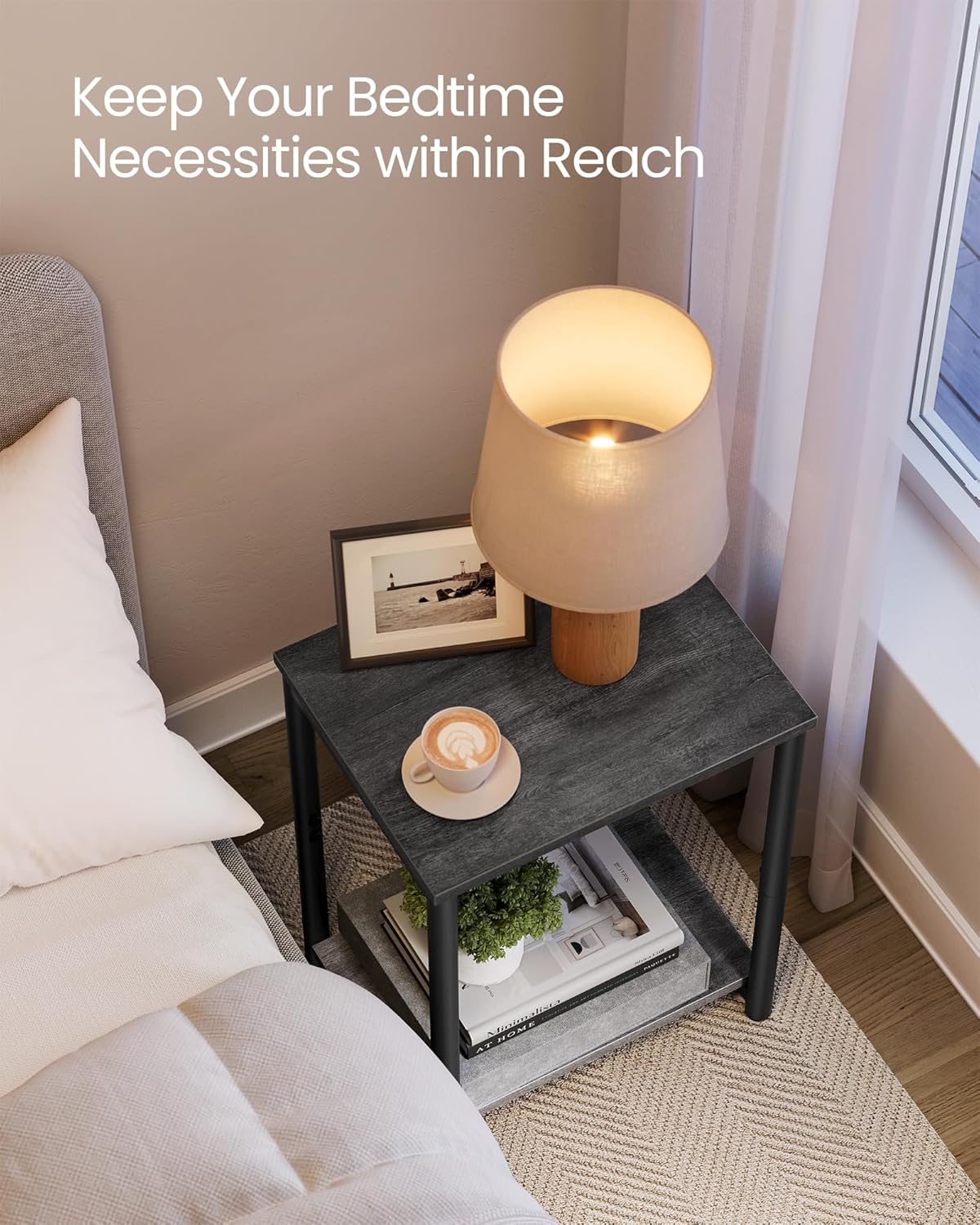 VASAGLE Set of 2 Side Tables, 2-Tier Sofa Side Tables, Bedside Tables with Steel Frames, for Living Room, Bedroom, Home Office, Industrial Style, Misty Grey and Classic Black LET272B68