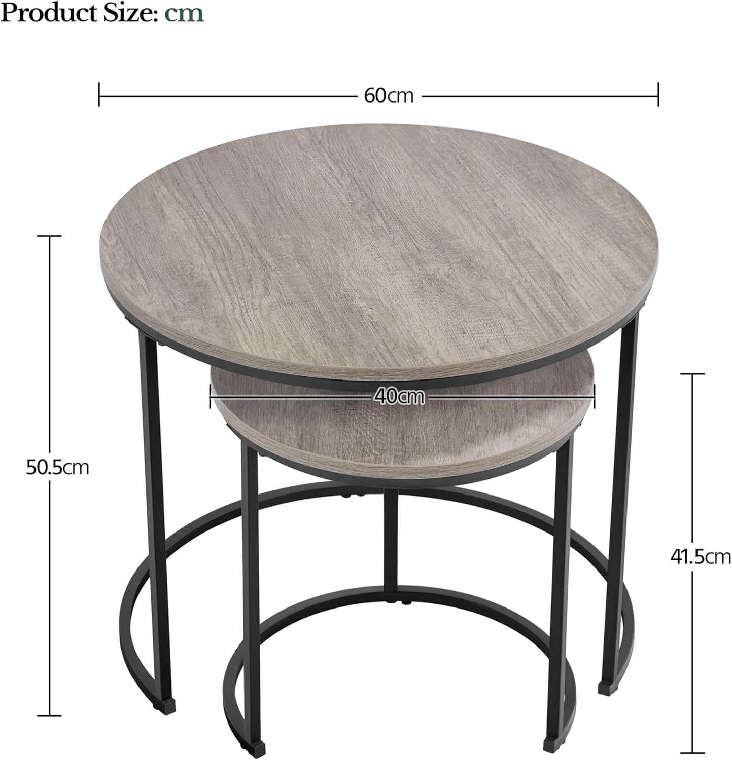 Doubled surface area: Compared with other coffee tables, this nesting table set is designed with two spacious round tabletops, which maximizes the storage space for you. The wood-like grain on the top adds a natural accent and shows your unique taste