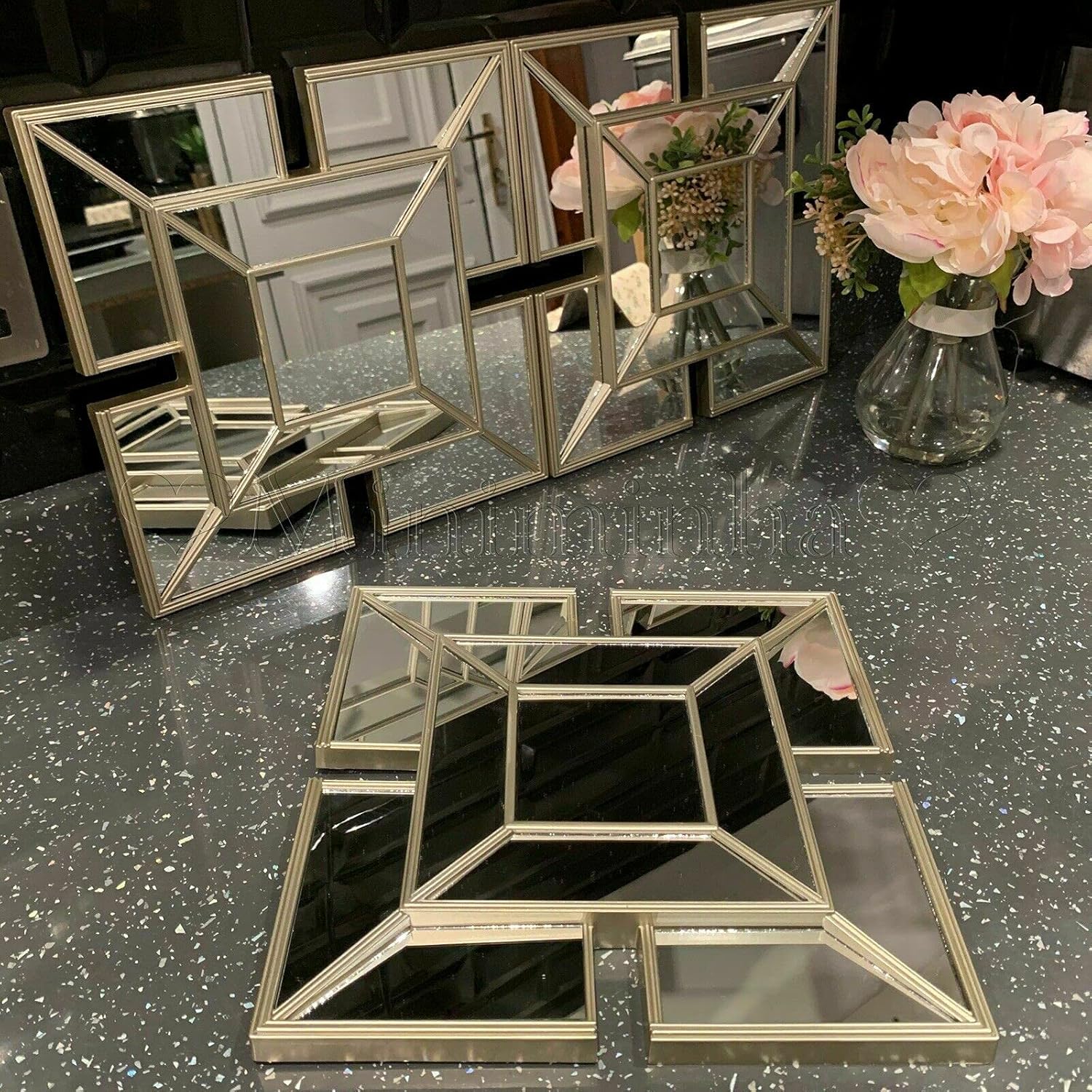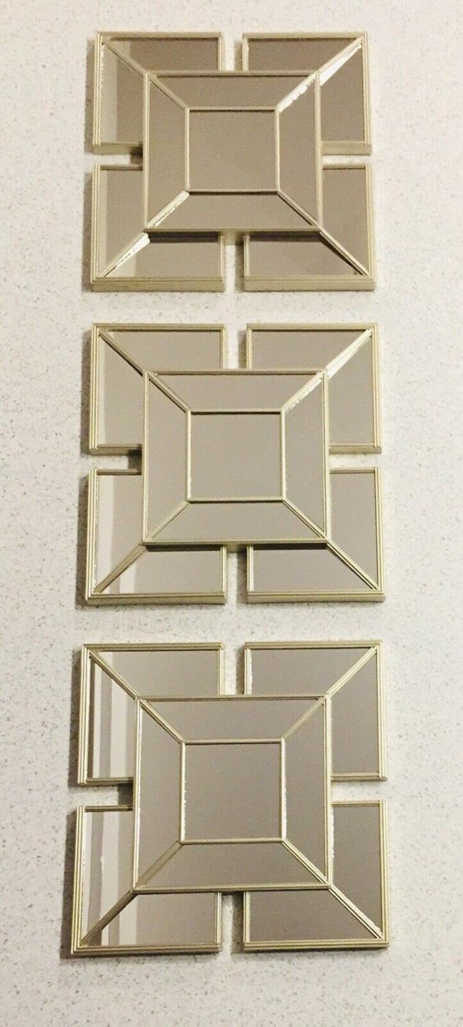 Wall Mirrors decorative Set Of 3 Art Deco Style Mirrors 1920 design, wall mounted beautifull living room bedroom hallway mirrors. Home deco. Elegant 25X25CM