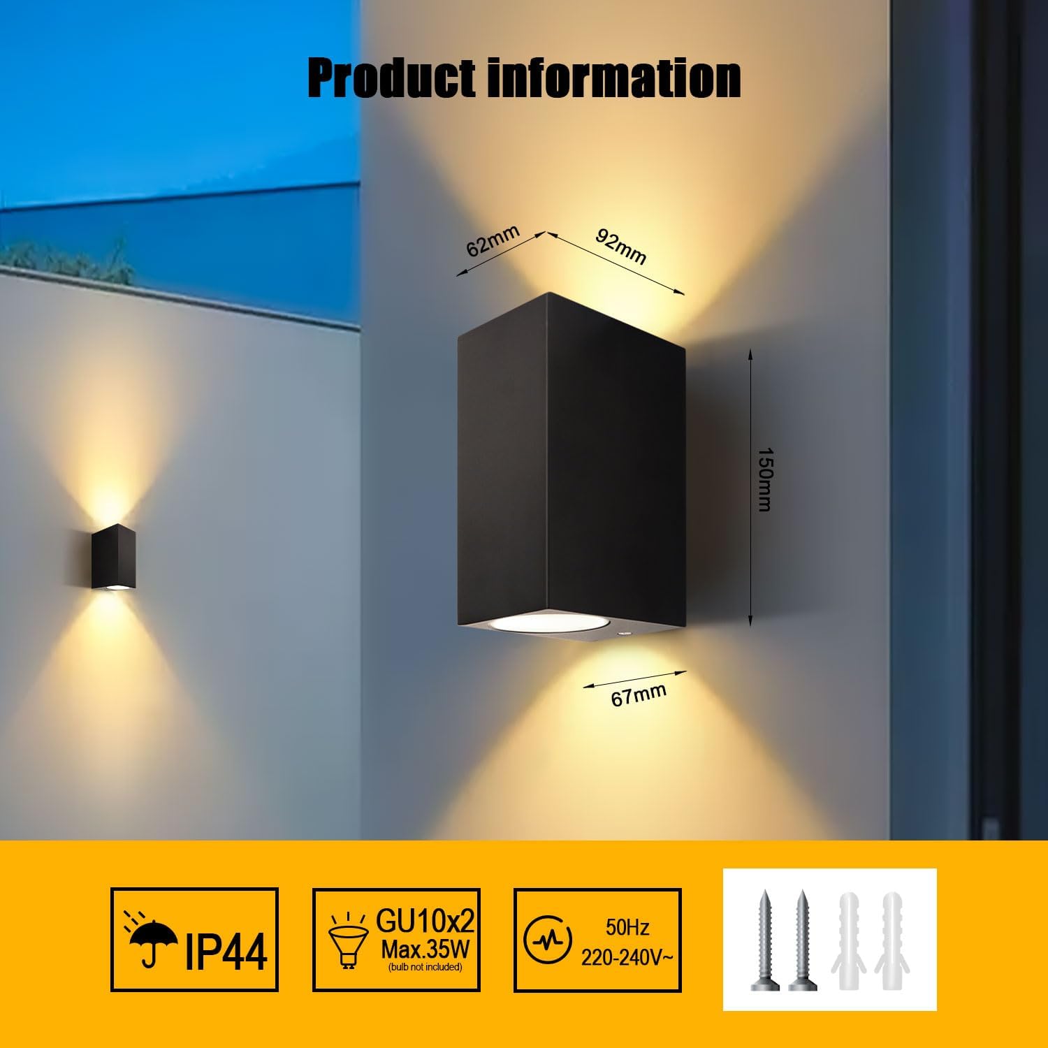 Applicable Bulb Type 2 x GU10 (Bulbs not included)Max 35w Applicable Voltage 220-240V~ Waterproof Level IP44 Applicable Scene Patios, Gardens, Porches, Doorways, and more