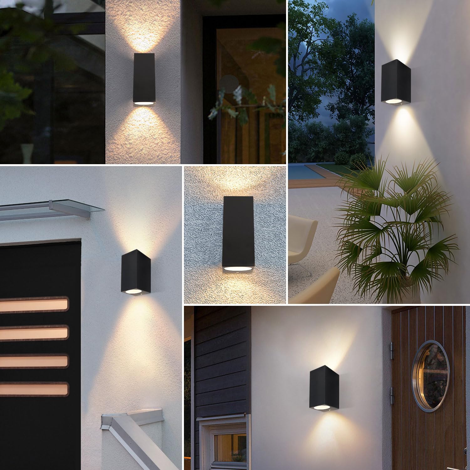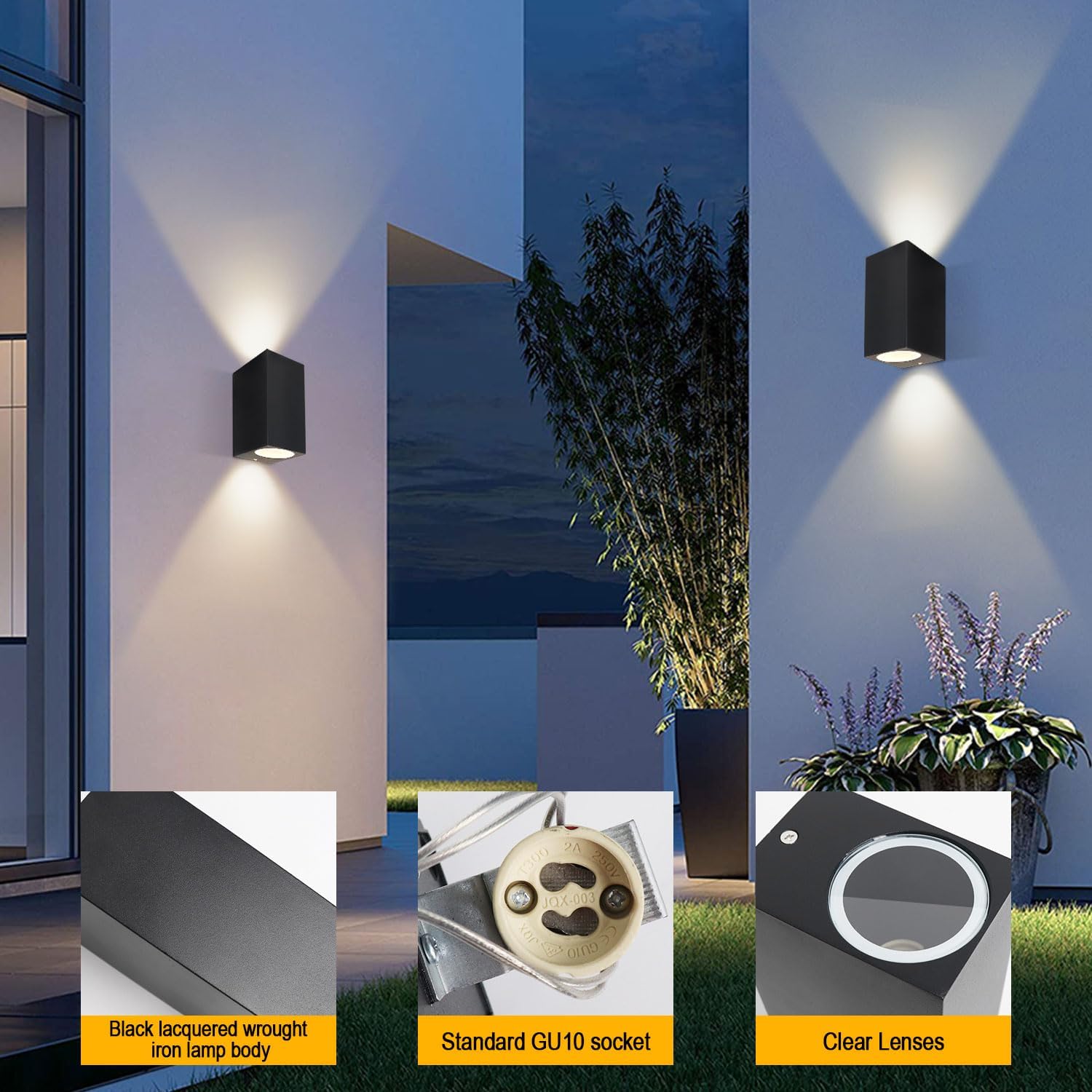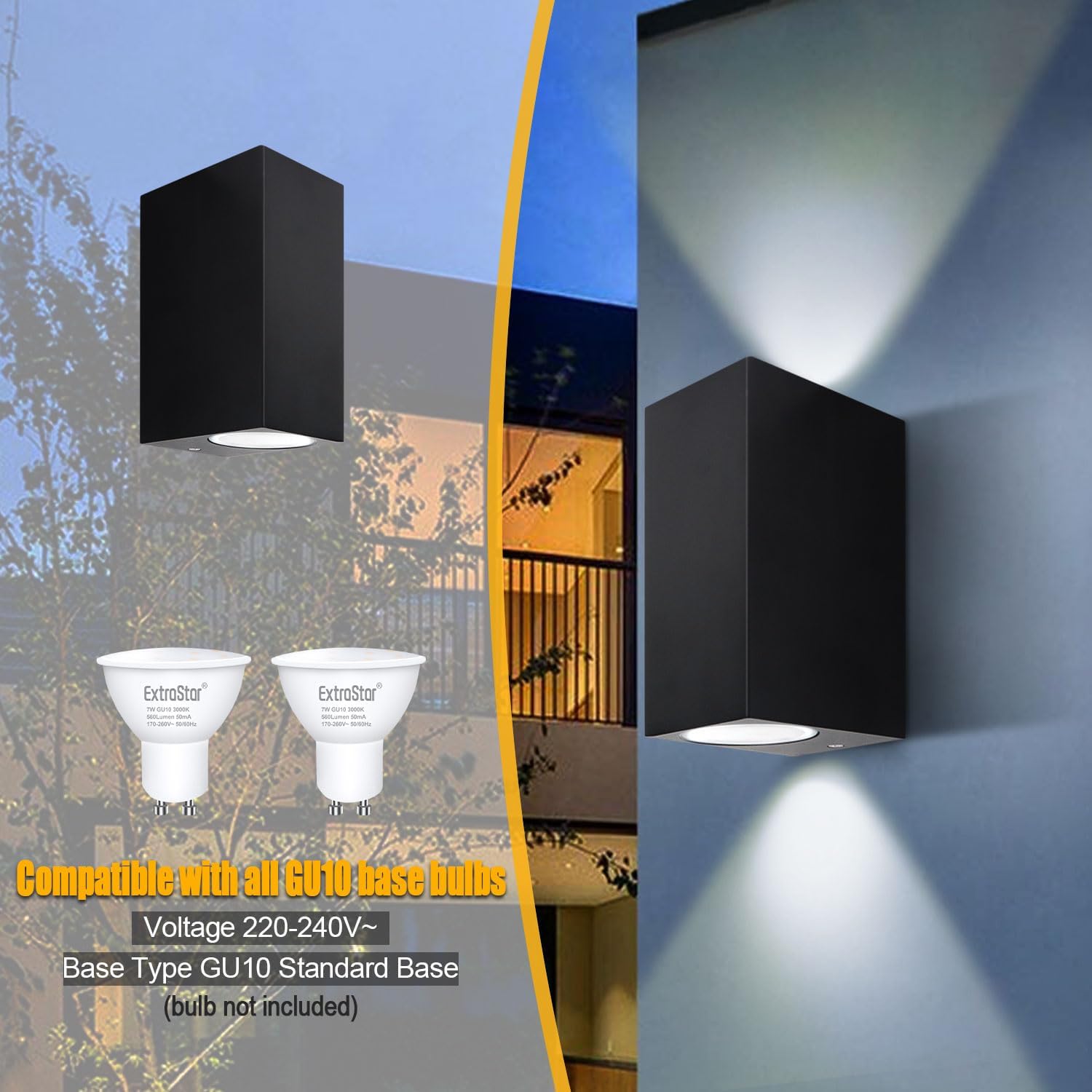 EXTRASTAR Outdoor Wall Lights, GU10 Base Up Down Exterior Wall Sconce, IP44 Waterproof Outside Wall Lights Aluminum Black for Garden, Patio, Garage, Porch(Bulbs not Include)
