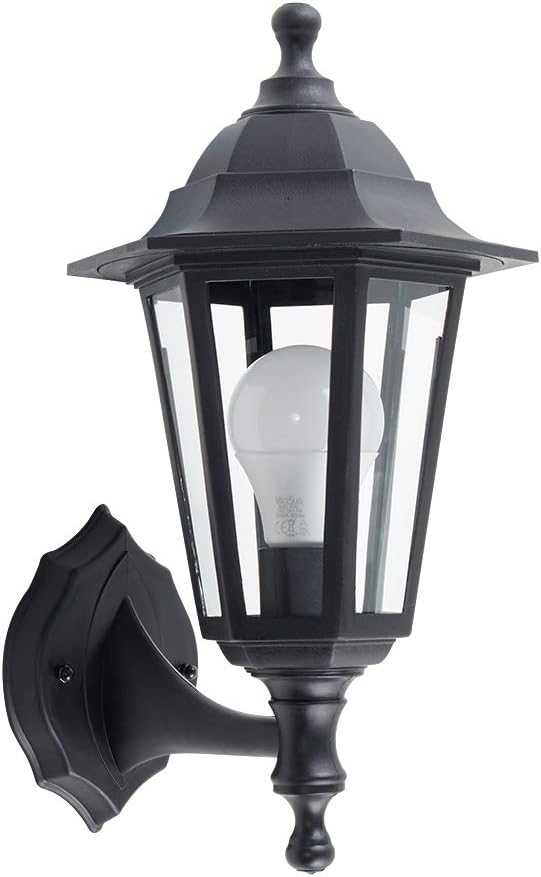 Traditional Style Black Outdoor Security IP44 Rated Wall Light Lantern – Complete with a 6w LED GLS Bulb [3000K Warm White]