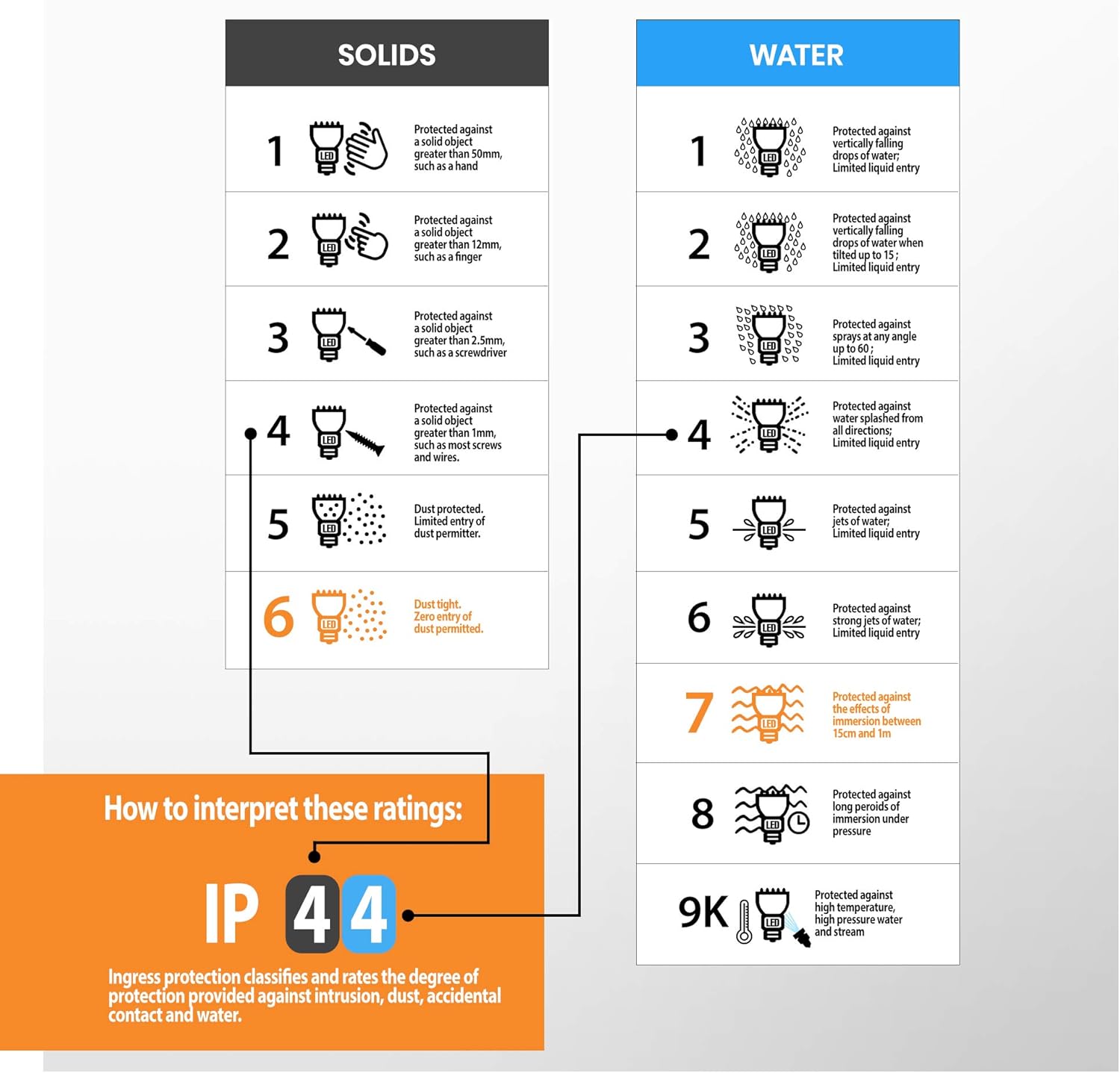 ✓ IP44 Rated: Suitable for indoor or outdoor use