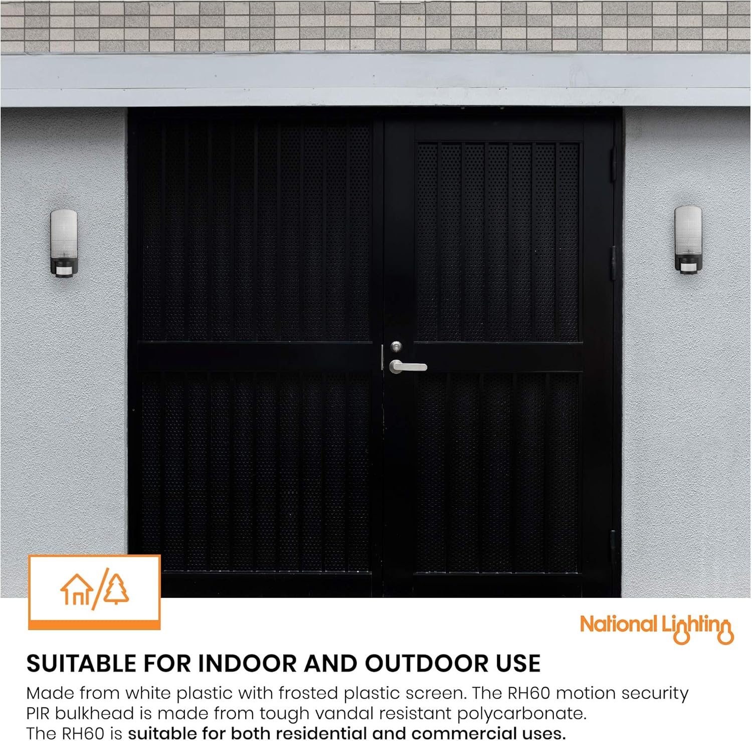FUNCTIONAL OUTDOOR WALL LIGHTS WITH PIR SENSOR – Made from tough vandal resistant polycarbonate, this wall-mounted light is weatherproof and durable. Excellent for external lighting applications.