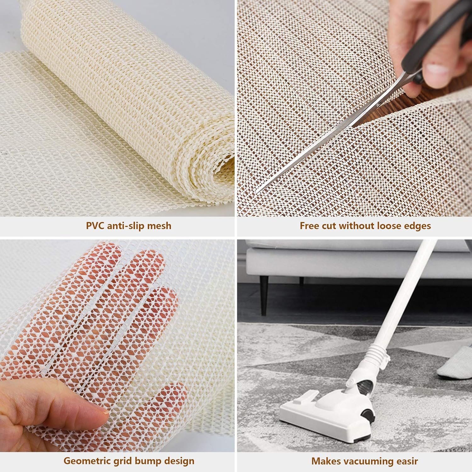 HIGH QUALITY : Our anti slip rug underlay is made of PVC latex,durable and non-slip, tear-resistant and easy to clean, low-maintenance material, suitable for long-term use.