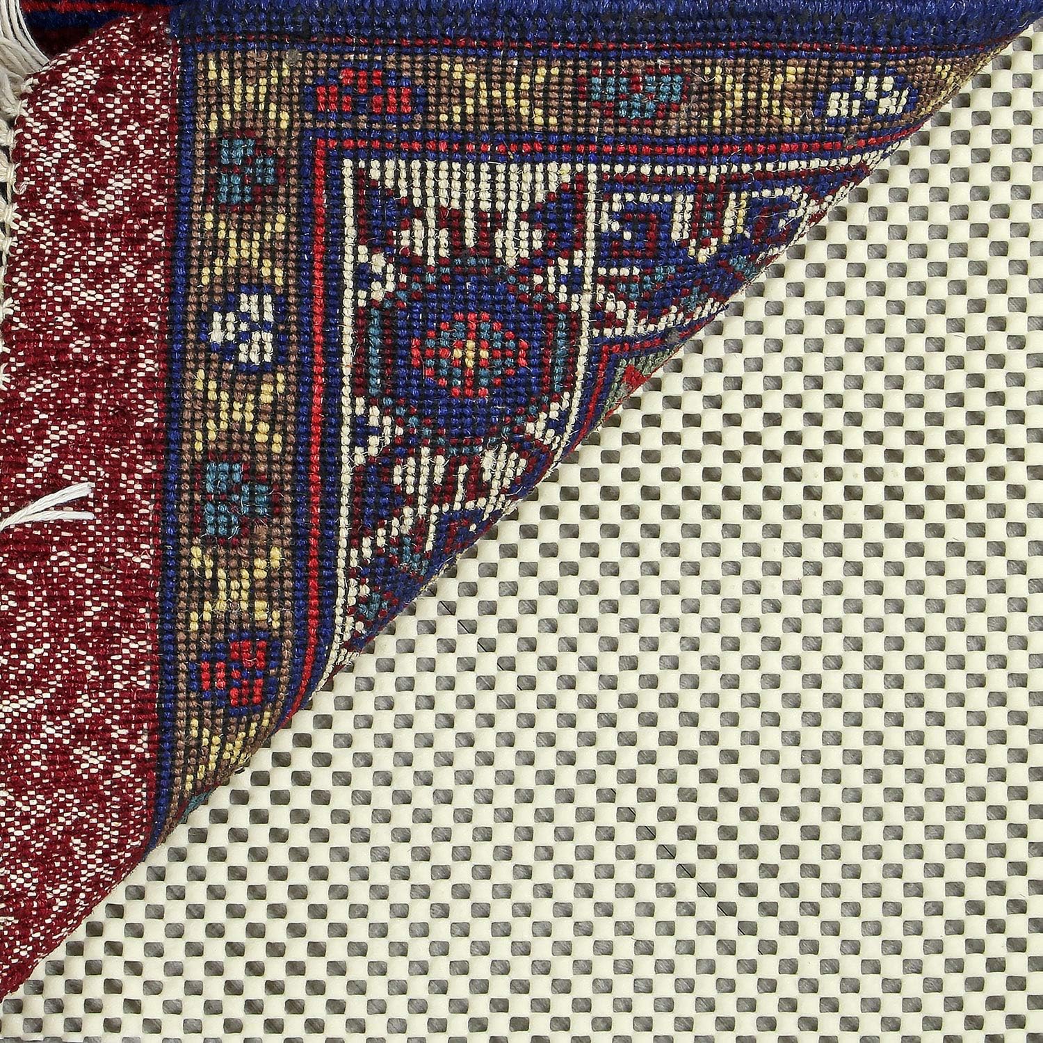 Whether flat woven carpet, long pile / Shaggy or runners, with the anti-slip mat the carpet always stays safely on the ground. Ideal for tiles, parquet-/laminate-flooring or PVC, the anti-slip mat prevents slipping and ensures a safe lying of the carpet. The anti-slip mat offers more comfort underfoot and prevents accidents. Grid of PVC coated polyester can be easily cut with scissors to when needed. Also suitable for floors with underfloor heating.