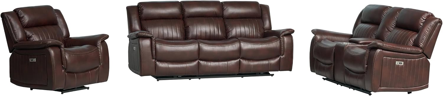 Emporium Furniture Electric Recliner Premium Leather 3 2 Seater Sofas Couches & Armchair reclining seats cup holders USB charging ports & wireless charging pad (Brown, 3 Seater)