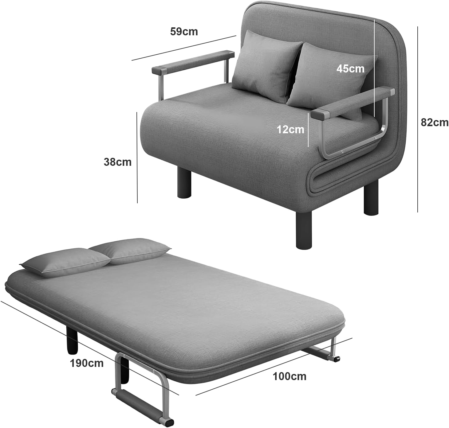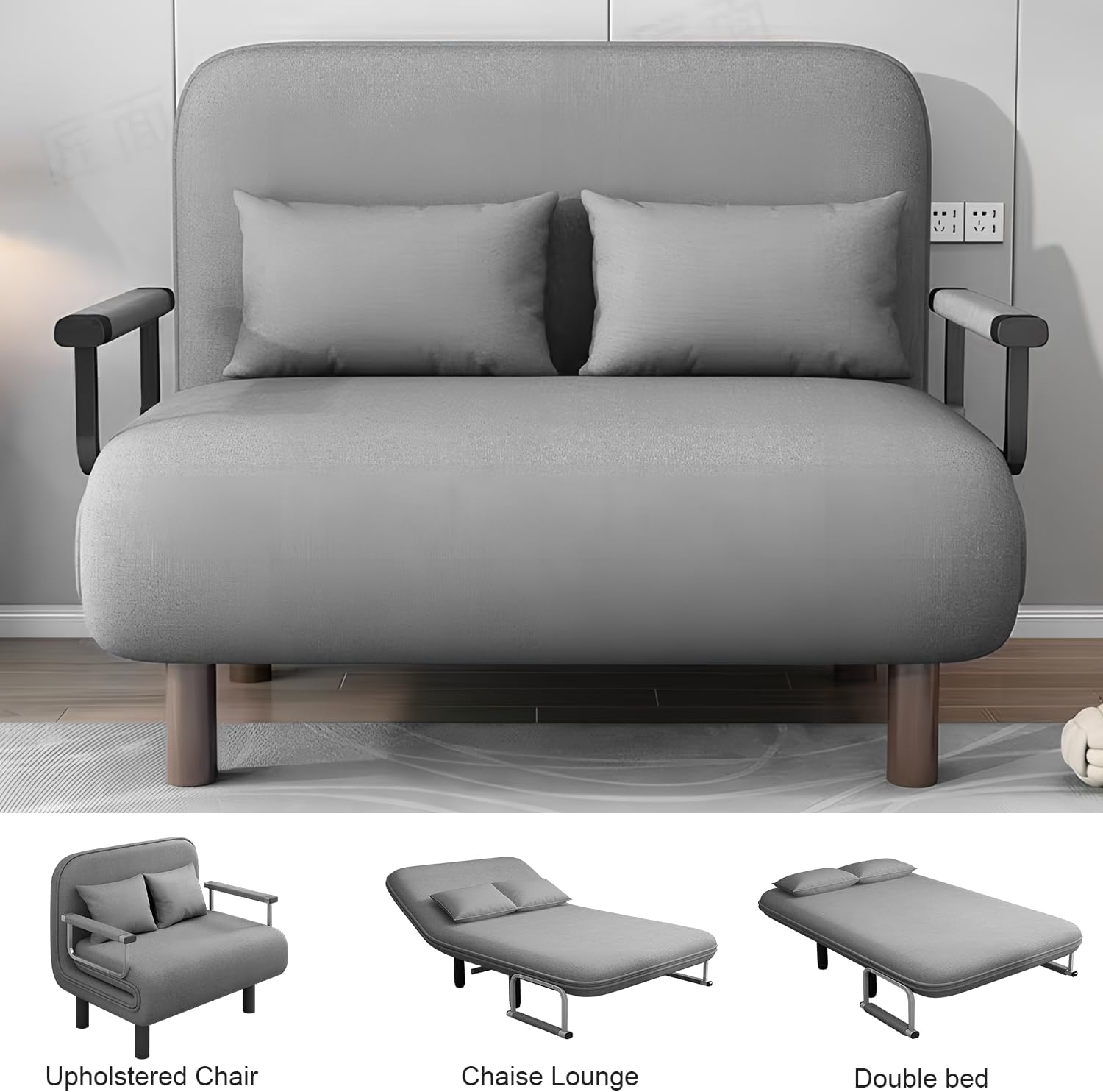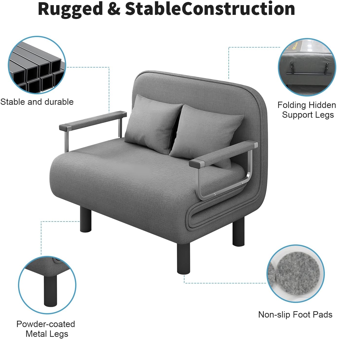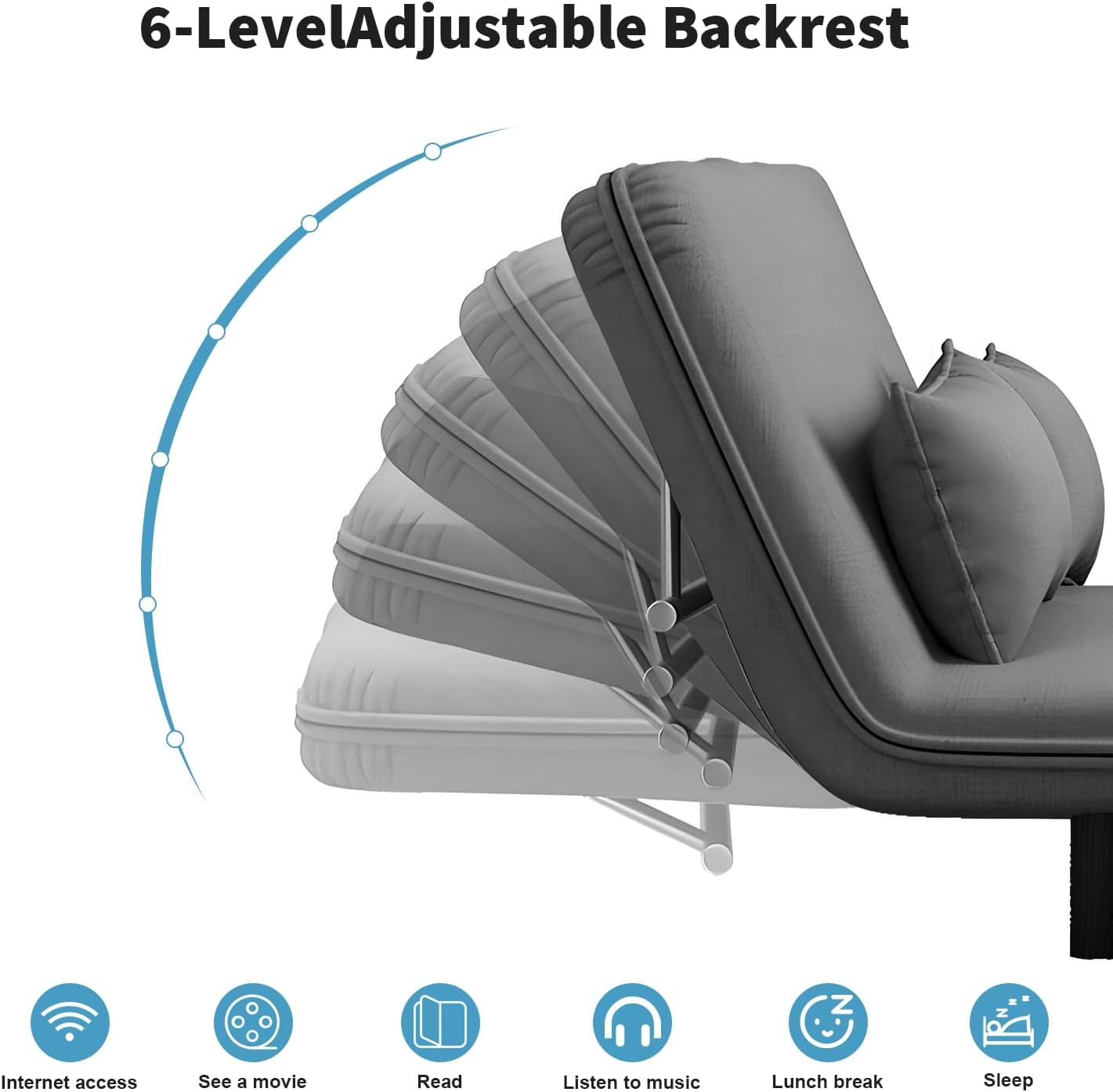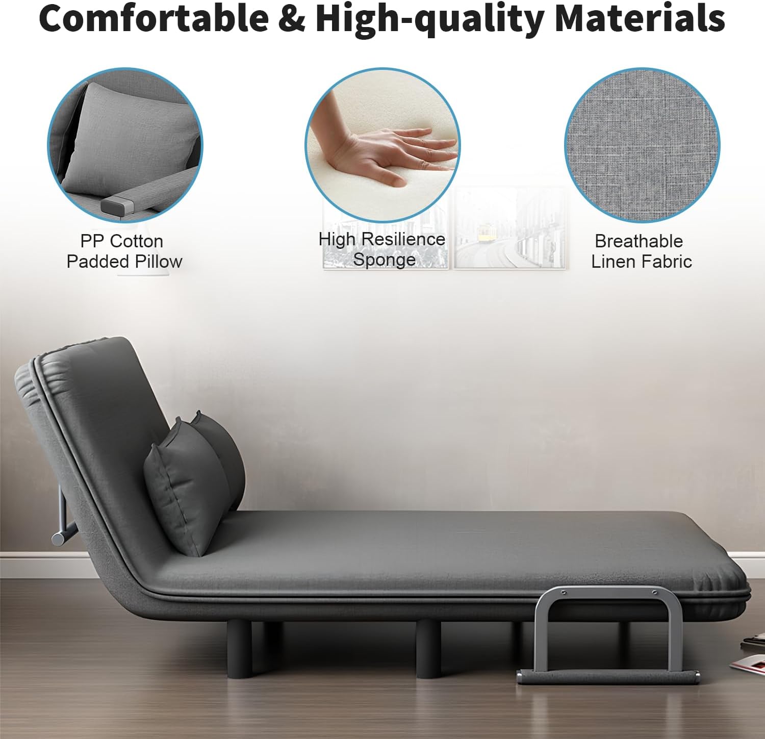 LONENESSL Folding Sofa Bed, Adjustable Sleeper Chair Bed 3-in-1 Sofa, with 6-Position Adjustable Backrest and Removable Pillow, Sleeper Recliner Armchair for Living Room, Bedroom, Guest Room, grey