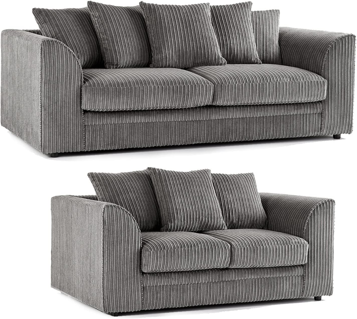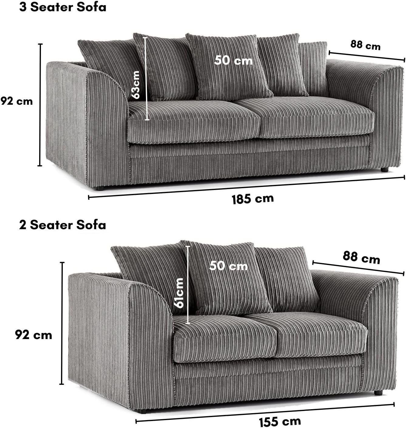 Sofa Seater – Jumbo Cord Scatter Back 3 and 2 Seater Suite Comfortable Dylann Sofa 3 Seater L Shaped Corner Couch Bed Seater for Living Room Lounge (Grey, 3 x 2)
