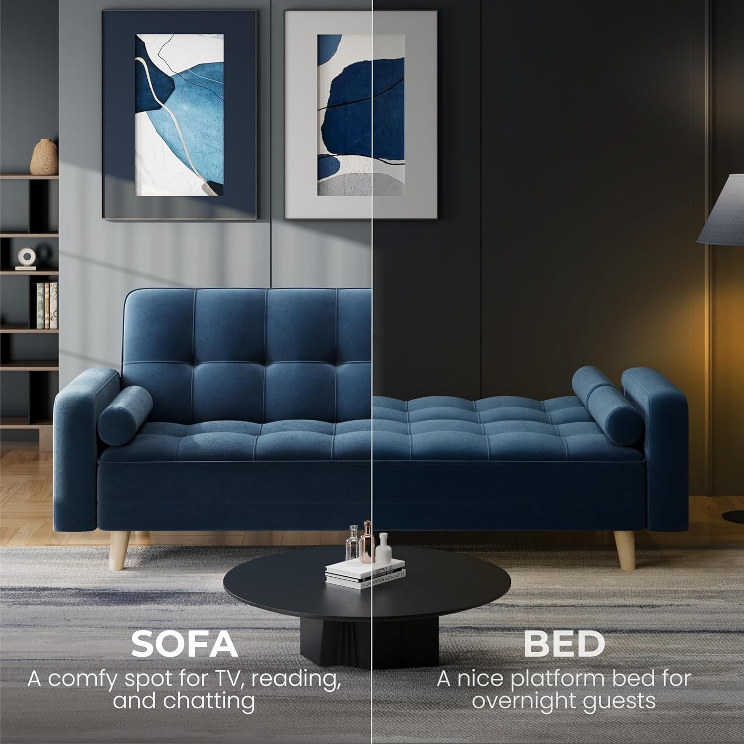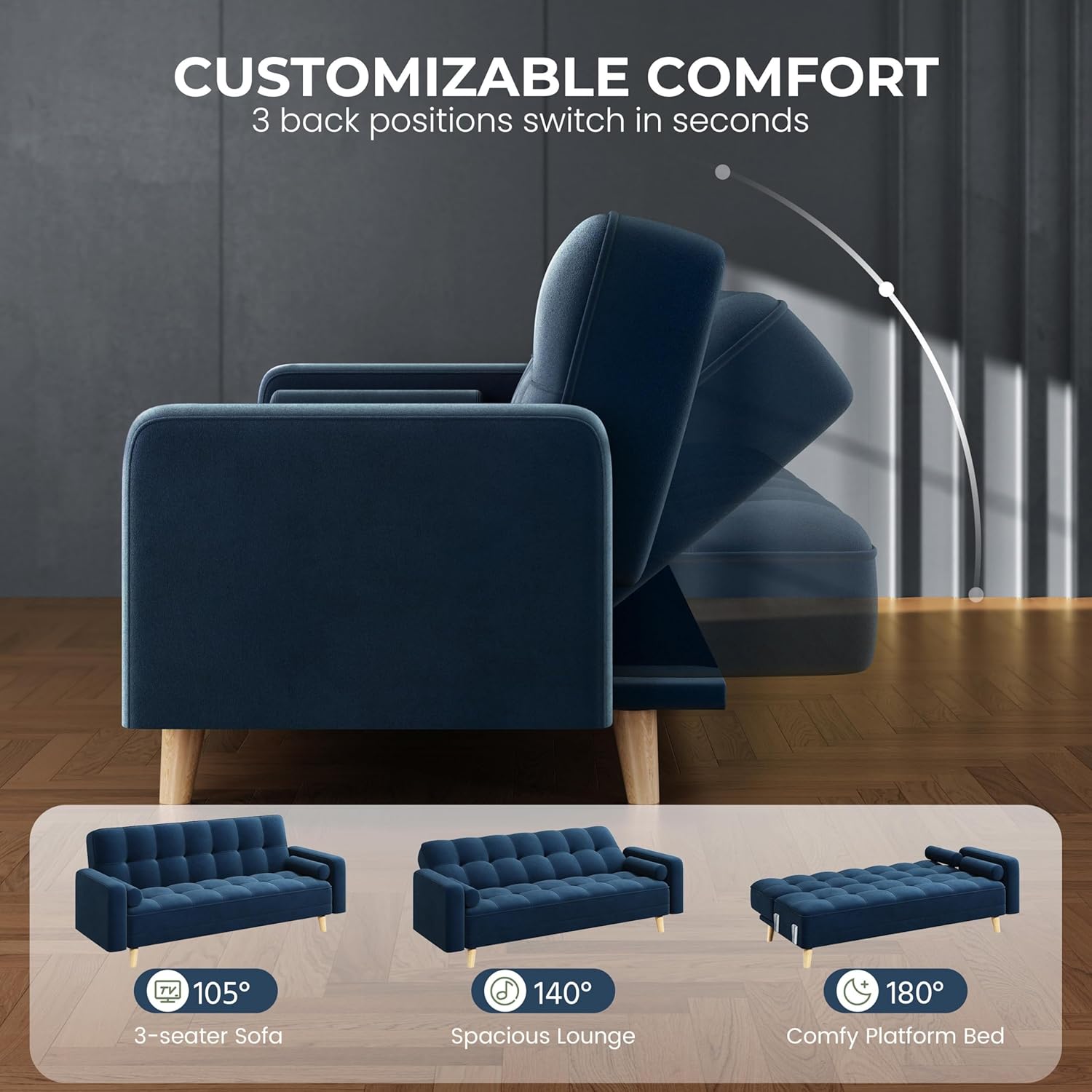 【Removable Armrests For Flexibility】For added convenience, this fabric upholstered sofa bed is designed with two removable armrests on both sides. Keep it as a comfortable sofa with both armrests attached, or convert it into a platform bed by removing one or both armrests.