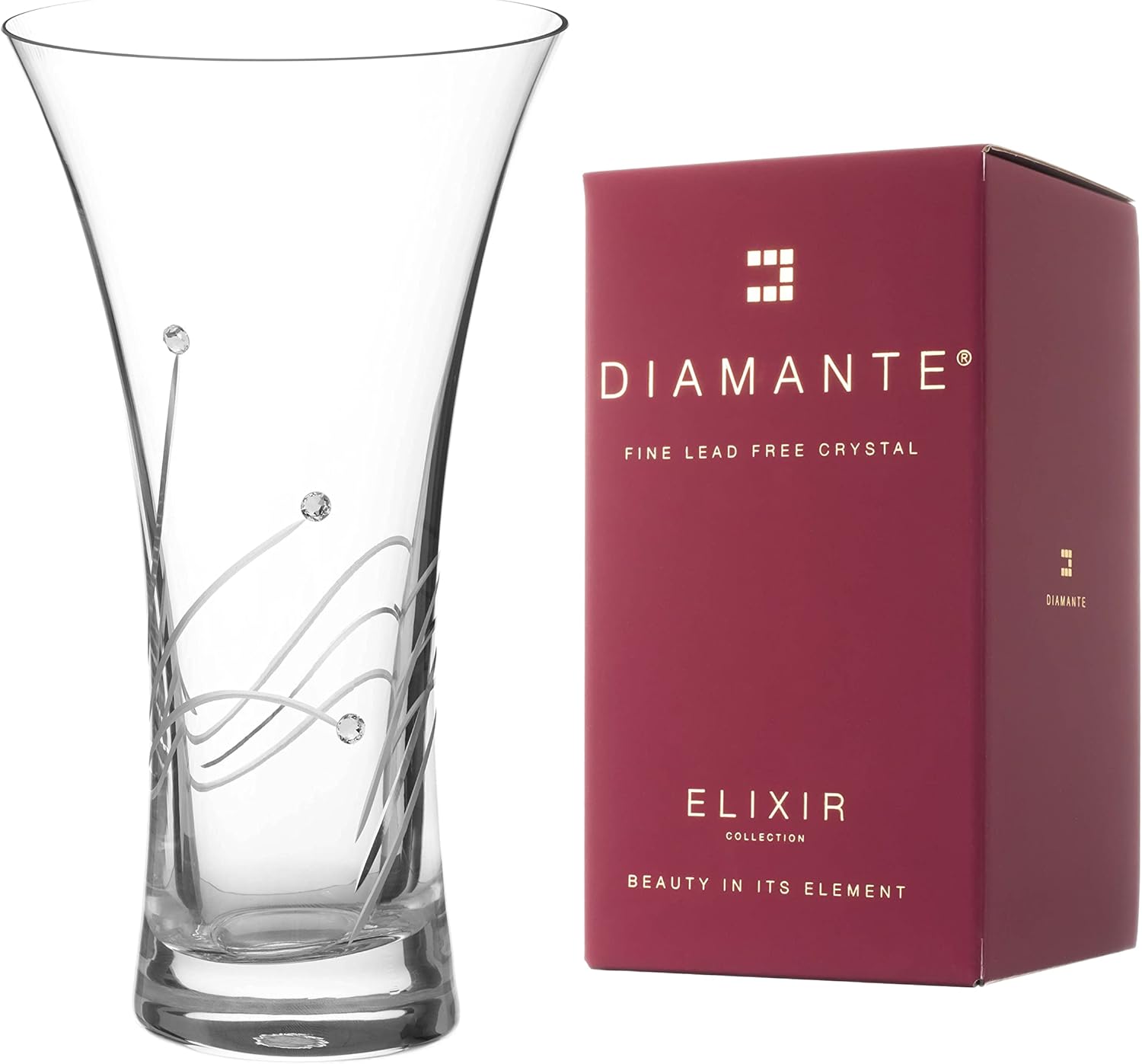 DIAMANTE Swarovski Hollow Sided Trumpet Vase ‘Glasgow’ Crystal Flared Vase with Swarovski Crystals – 21cm – Crystal Glass