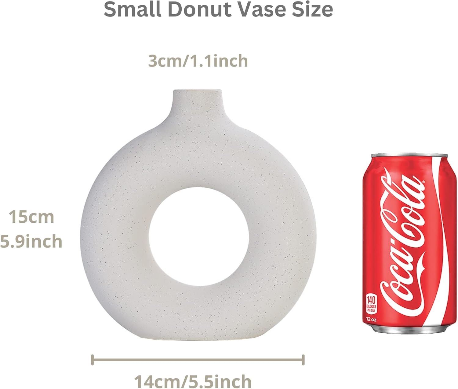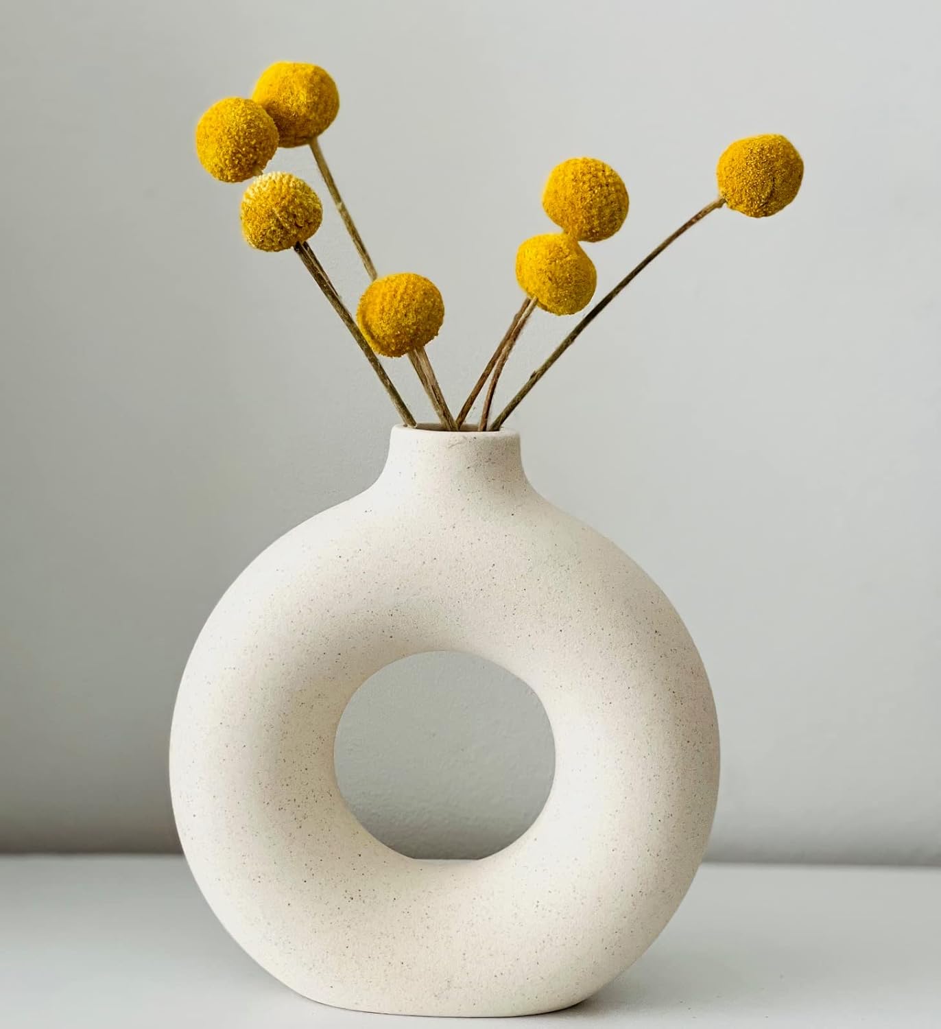 Pampas Vase: this small white ceramic vase is perfect as pampas grass vase, modern vase, its made of 100% ceramic, with matte finish. Size: 15cm*14cm*4cm/5.5inches*5.1inches*1.5inches Shape: Donut/doughnut