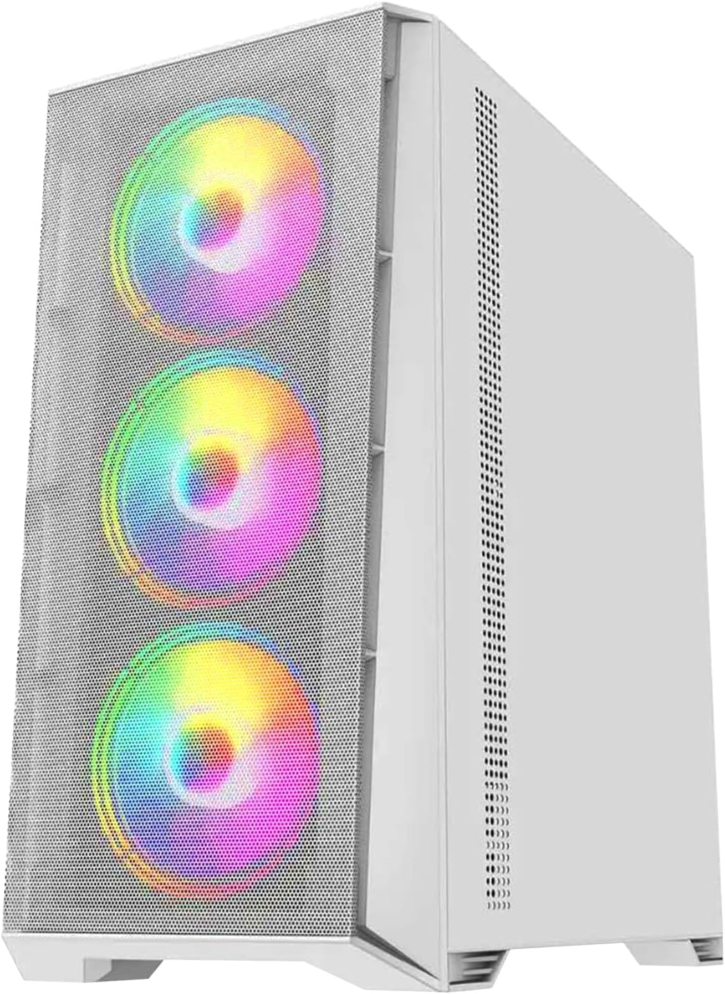 𝗛𝗶𝗴𝗵 𝗤𝘂𝗮𝗹𝗶𝘁𝘆 𝗖𝗼𝗺𝗽𝗼𝗻𝗲𝗻𝘁𝘀: 16GB 3200MHz DDR4 RAM , 1TB NVME SSD Drive, WiFi Ready, 500W Bronze Rated PSU combined with X= Mesh White Tempered Glass RGB Gaming PC Case.
