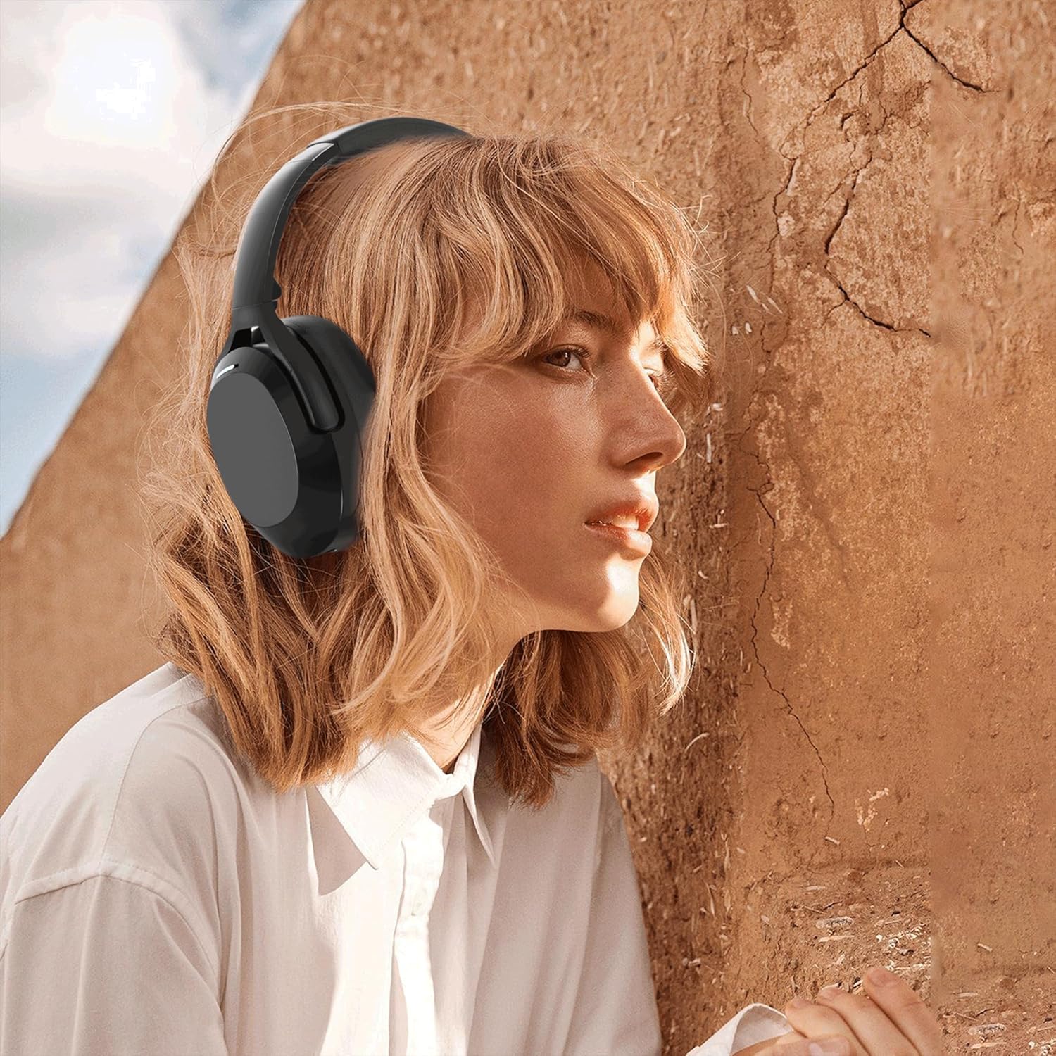 When used outdoors, the wireless over-ear headphones effectively reduce environmental noise, ensuring your music remains clear and undisturbed, so you can enjoy pure sound even in noisy environments.