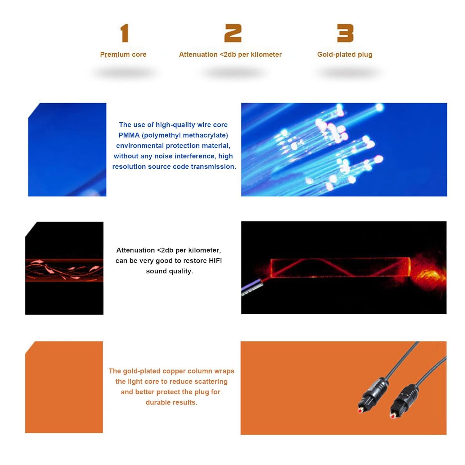 ➨ Audio Performance: Featuring OD2.2 optical fiber cable and advanced protective design, this cable provides stability and safeguarding against external interference and damage, ensuring clear and consistent audio transfer.
