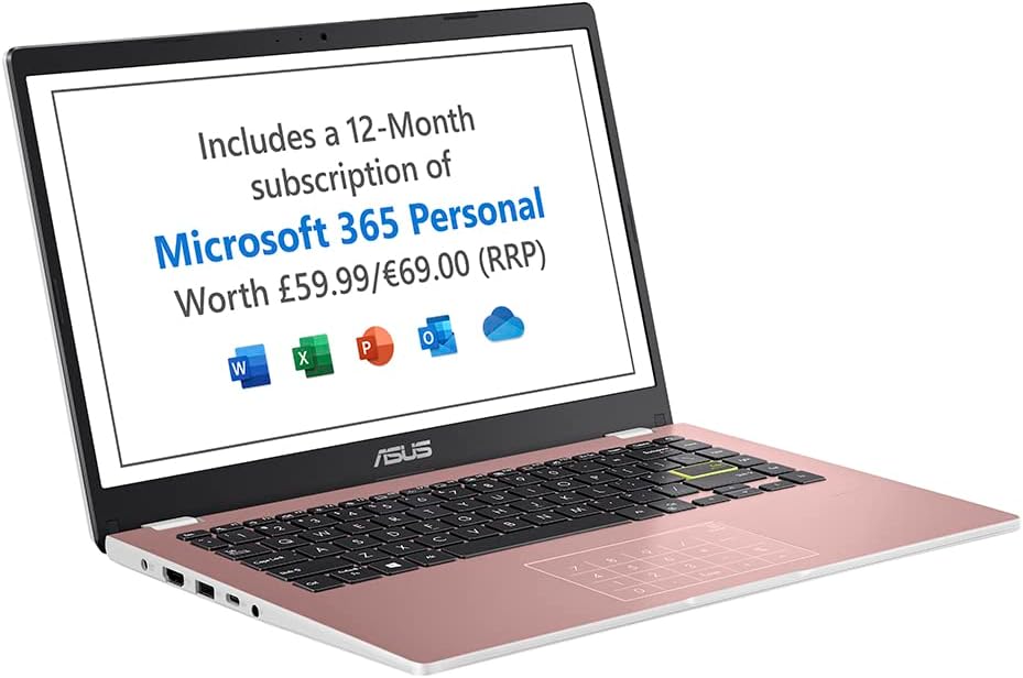ASUS Vivobook 14 E410KA 14″ Full HD Laptop with Microsoft Office 365 (Intel Celeron N4500, 4GB RAM, 128GB eMMC, Windows 11 S Mode) Ships with 1 Year Microsoft Office Subscription