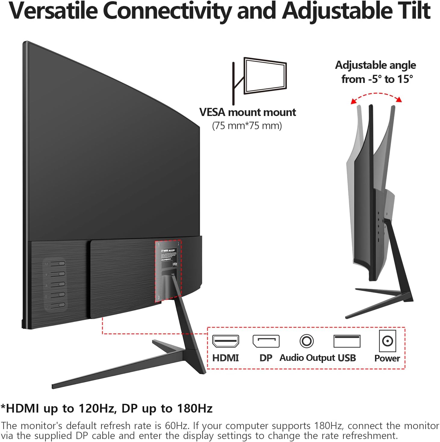Gawfolk 24 Inch Curved PC Gaming Monitors 180hz, FHD 1080p 1ms without Bezel, freesync, 100% sRGB,178 ° Angle View HDMI DisplayPort, Compatible with Mural VESA75*75MM – Black