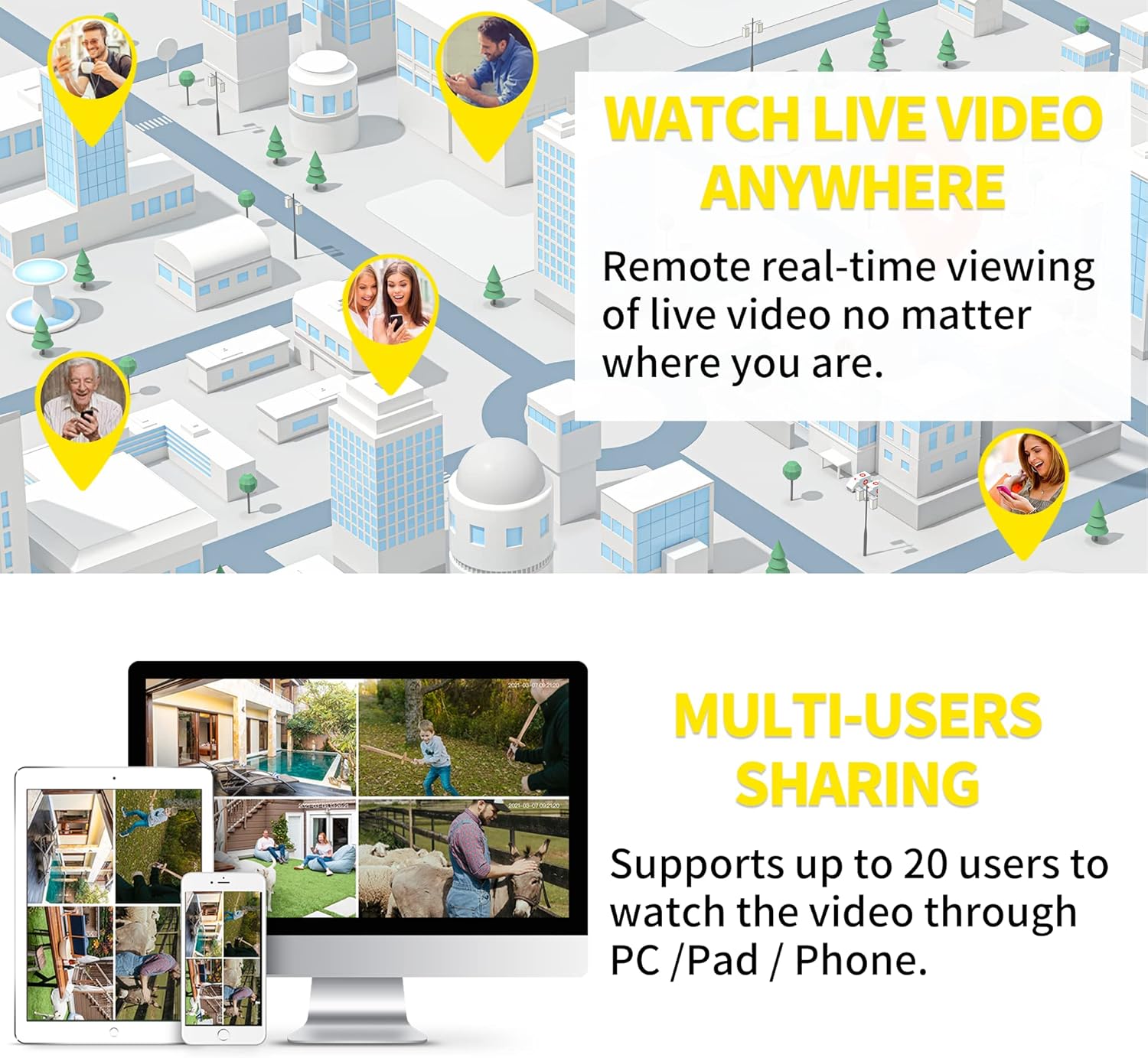 【Enterprise-class Video Encryption & Cloud/SD Card Storage】Enterprise-class AES256 encryption technology ensures a secure, real-time video data transmission and cloud storage. Review, download, and share your cloud data without any data loss at all times. It can also support up to 128GB micro SD card (NOT included).