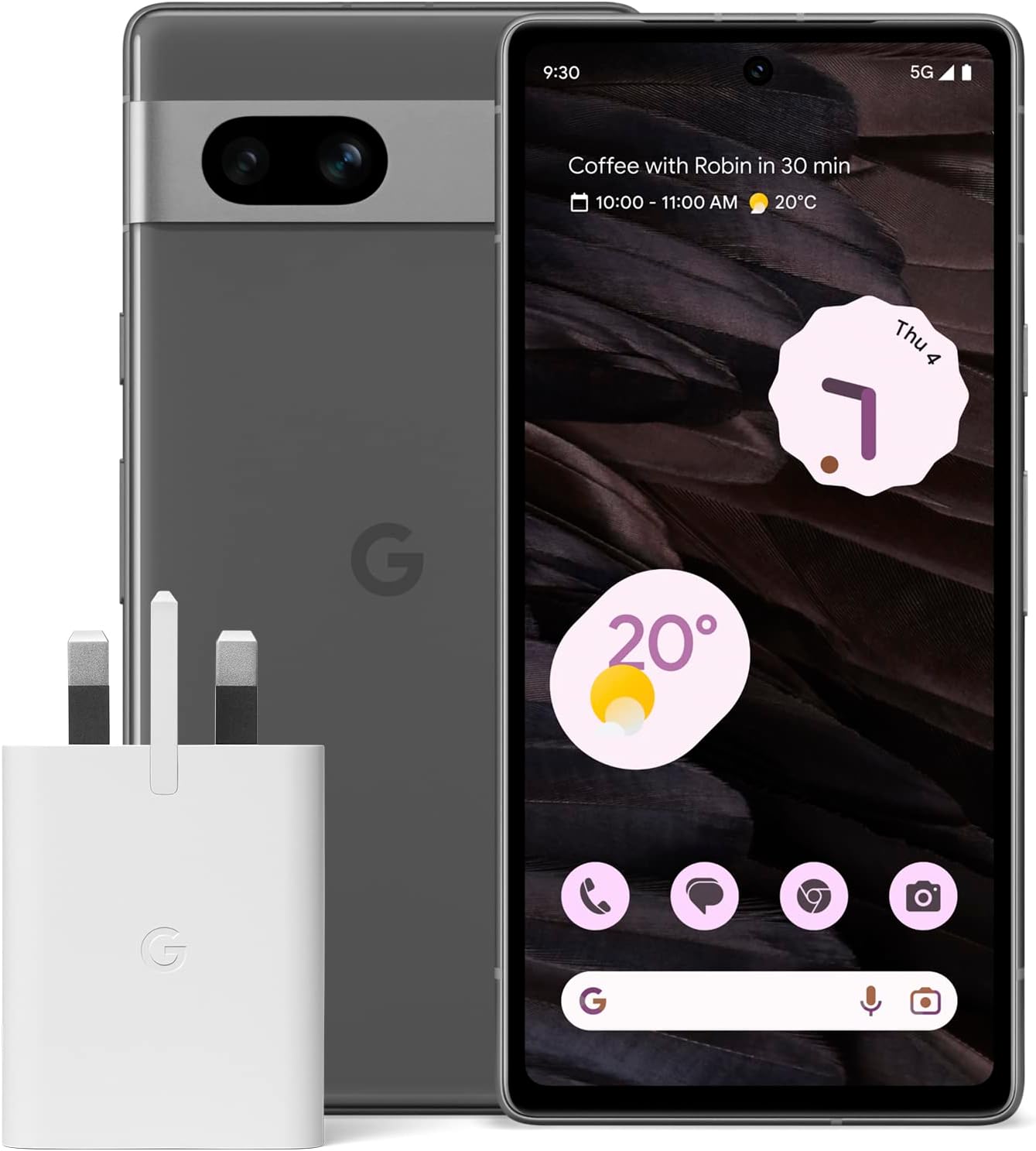 Google Pixel 7a and Pixel 30W Charger Bundle – Unlocked Android 5G Smartphone with Wide-Angle Lens and 24-Hour Battery – Charcoal (Amazon Exclusive)