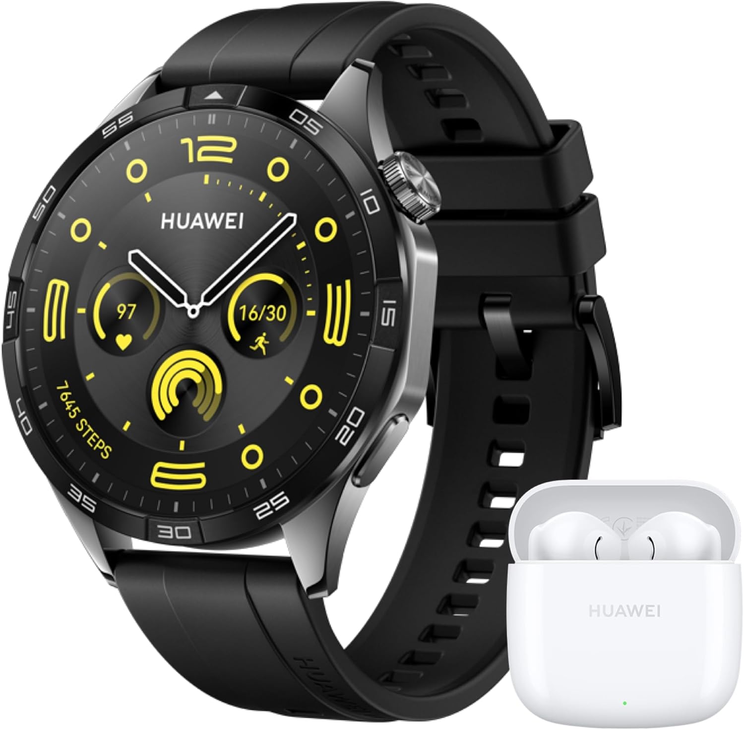 HUAWEI WATCH GT 4 Smart Watch 46MM Black, Up to 2 Weeks Battery Life Fitness Tracker Compatible with Android & iOS FreeBuds SE2 White Wireless Earphones, Bluetooth In-Ear Headphones