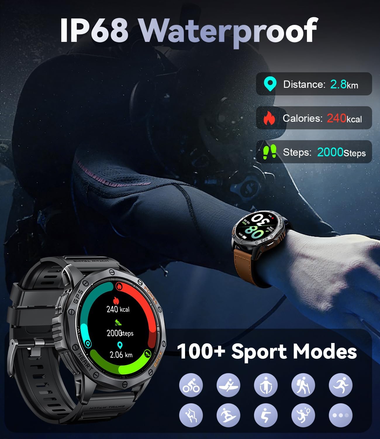 180 Sports Modes & Everyday Waterproofing: Track your fitness journey with 180 different sport modes and enjoy the convenience of IP68 waterproofing. Whether you’re sweating it out at the gym or splashing in the rain, this watch is built to keep up with your active lifestyle