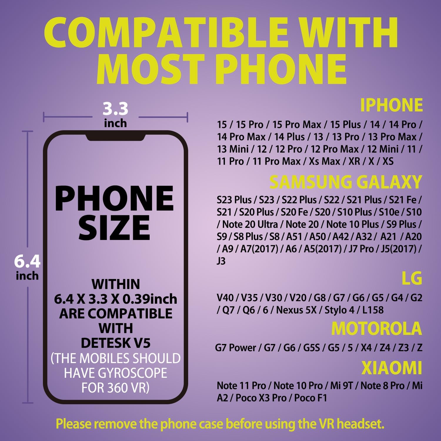 【Wide Compatibility】Supports smartphones with 4.7-6.8 inches screen with gyro, phone size is under 163 x 83 x 10 mm (L x W x H), such as for iPhone 16 /16 pro/15 Plus/15/iPhone 14 Pro Max/14 Plus/14/13 Pro Max/13/12/11/Pro/Max/Mini/Xs Max/XR/X/Xs, Please remove the phone case before use. Supports for Samsung S22/S21/S20/S10/S10e/S10 Plus/S9/S9 Plus/S8/S8 Plus/ Note 10 Plus/Note 10/9/8/A20e/A50★★DO NOT Fit Samsung Galaxy S24 Ultra/S23 Ultra/S22 Ultra/S20 Ultra/iPhone 15 Pro Max★★